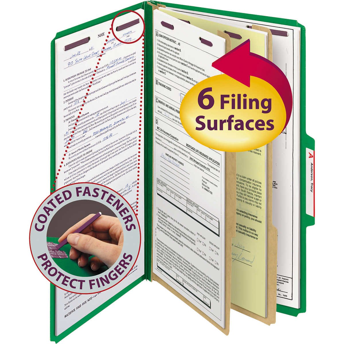- One 1″ SafeSHIELD coated twin-prong fastener front and back