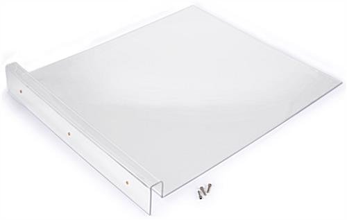 This sneeze guard attachment mounts onto any flat surface up to 0.75″ thick and is the perfect protective shield solution for creating social distancing. Protect the health of staff and visitors at hospitals, clinics, and nursing homes with this physical distance barrier. The acrylic sneeze guard attachment is a reliable splash protector to help reduce the spread of disease. The plastic barrier features a 3″ lip that slides on and screws directly onto any flat surface.