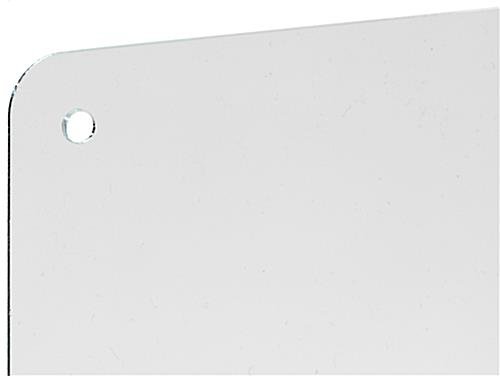 This hanging acrylic sneeze guard is perfect for cashiers in convenience stores, markets, retail shops, or banks to help keep a healthy social distance. This clear protective guard allows for everyday business transactions to occur with an added layer of safety. Each 23″ x 31″ hanging acrylic sneeze guard allows for many different placement styles. The four drill holes in the corners allow you to hang this piece from the ceiling with hardware or fasten it to a flat surface. Industrial strength hook and loop strips are also included as another mounting option for this protective guard. This hanging acrylic sneeze guard is a great way to protect your cashiers and customers while also helping enforce social distancing guidelines in your store.