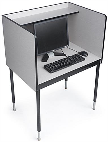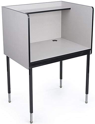 This work carrel will pose as the perfect study station to give students privacy and functionality when “hitting the books”. This unit has a gray melamine body with square steel legs that feature leveler glides on the bottom to remain sturdy on any surface. The school work carrel has a 31.25”W x 22.75”D work surface. With height adjustability between 47”-53”, the unit can accommodate any age group. The carrel is CARB certified and meets E1 standards making it the perfect study station for any school or university. Don’t worry about a messy setup, all hardware and instructions are included!