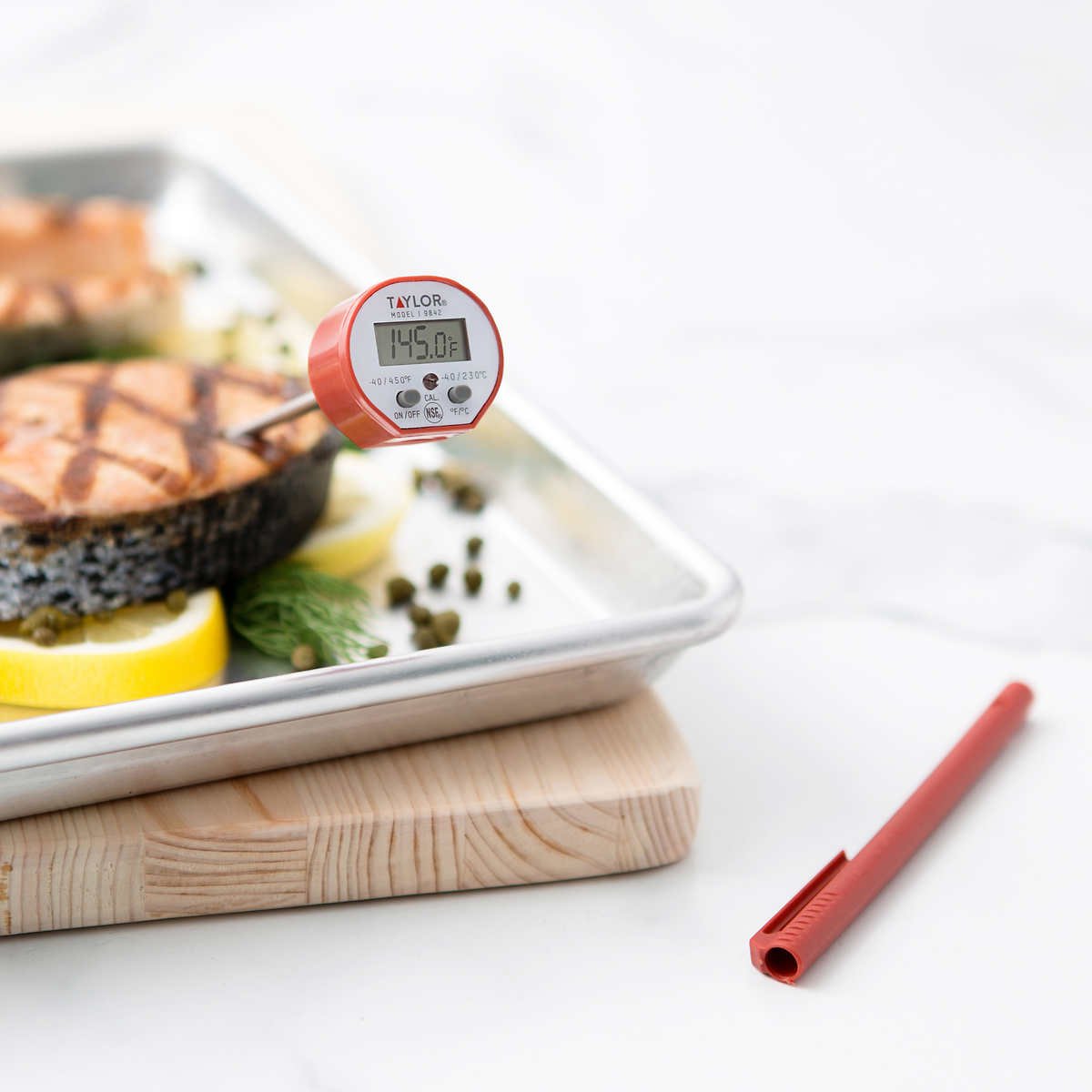 For ultra-precise temperature readings at an affordable price, turn to this waterproof instant read thermometer. This thermometer’s advanced probe registers between -40°F to 450°F and -40°C to 230°C, giving you the most accurate readings to ensure your food is both delicious and safe by recommended standards. The unit itself is built with an anti-microbial housing.