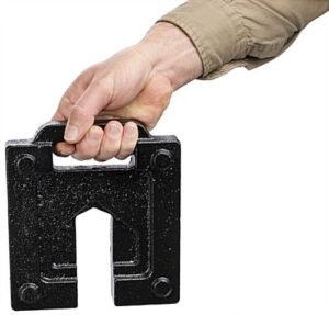 This tent weight is 11lbs and has a durable and long-lasting construction that will keep your canopy and frame securely in place outdoors, even on windier days. Place this U-shaped steel plate around the leg for an instant anchoring solution. This black powder-coated tent weight has a cut-out handle for easy maneuverability. This stackable plate design allows you to use multiple at once for added security and anchoring of your canopy and frame at your next outdoor event!