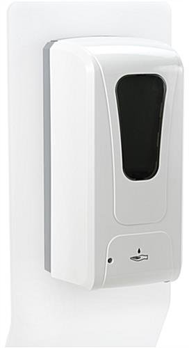 This countertop touchless hand sanitizer dispenser promotes safety and good public hygiene practices in lobbies, retail checkout areas, and medical waiting rooms. This battery-powered standalone display is mounted onto a durable white acrylic frame so your germ prevention station can go just about anywhere it is needed and features a large 1 Liter refillable container for, especially busy areas. This automatic countertop touchless hand sanitizer dispenser does not use a push-button or pump system, which greatly reduces potential contamination. A single shot is dispensed when a palm is placed underneath the motion sensor, so employees and visitors never need to put their hands on this sanitizing station. No expensive replacement cartridges are needed for this refillable standalone display; simply top off with your free-pour cleansing gel of choice. This white acrylic automatic countertop hand sanitizer dispenser eliminates the need for hand pumps and shared contact points, reducing the chance of spreading germs.