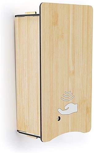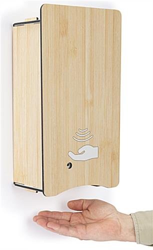This wall mounted sanitizer with dispenser cover has a natural faux-wood finish for a design-forward sanitizing solution in your office, waiting room, retail store, or café. The hands-free design meets ADA height and reach standards while also minimizing the number of surfaces being touched, helping you maintain a more sterile business environment. Each modern wall mounted sanitizer with dispenser cover is powered by four C-Cell batteries and our AC adapter HSDISP12V (sold separately) can be used as an alternative power source solution. This automatic unit’s overall compact design will not interfere with your business’s interior aesthetics. The faux-wood housing has a convenient hinged design that allows you to lift and remove your sanitizing fixture when refills are needed. This hands-free device does not use any complex cartridge refills, making for a simple free-pour loading style when more gel is required. This faux-wood wall mounted sanitizer with dispenser cover is a wonderful way to create a sterile environment in your waiting room, restaurant, boutique, or anywhere else there is a large influx of people!