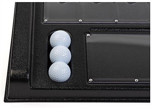 This portable putt putt trade show game offers a fun social experience to drive traffic to your next promotional event. This golf unit promotes an engaging environment great for attracting prospective customers. The portable putt putt trade show game is sold blank but we offer the choice to add full color custom printed panels to proudly feature your branding. Our hook and loop system locks the two pieces together, making assembly effortless. Each golf attraction weighs 18 pounds making transportation to your next event a breeze. For an added convenience we offer a specially designed PRPUTTBAG travel tote (sold separately). This portable putt putt trade show game is made with ABS plastic and includes three golf balls, a putter and artificial turf.