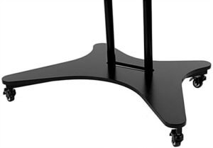 This mobile TV console is great to bring to a trade show for its light weight and versatility in monitor size. Standing at 67.5” off of the ground, this bracket is an ideal, mid-sized fixture. This rolling TV console features four locking caster wheels that help to effortlessly transport the bracket to different locations and secure it in place to ensure that the expensive mounted LCD screen is safe. Each entertainment center can withstand a maximum load of 180lbs which typically holds 37” to 70″ flat panel monitors. This TV console features a height adjustable bracket between 64” and 67.5” as well as a shelf that can be fixed between 23” and 27” off of the floor and can hold media such as laptops, DVD, and VCR players. Each flat panel cart has a VESA standard compatibility range between 200×200 and 600×400, including most other common sizes between these two.