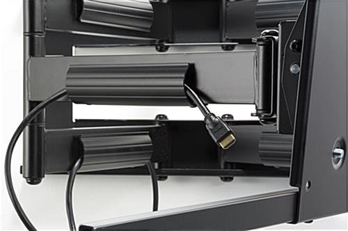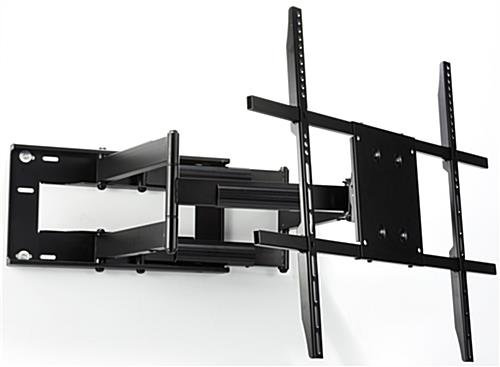This swing out TV mount is an articulating bracket with full motion capability. Tilt, swivel, and rotate between portrait and landscape orientations for the perfect flat panel viewing angles. Extend the articulating TV mount up to 31” from the wall for desired programming. Hide unsightly cables and wires in the built-in cable management system for a polished and professional display. Fix flat panels between the sizes of 42” and 90” to the full motion bracket of the TV mount. Built to last, this LCD display solution is built from steel and can hold up to a maximum weight of 200 lbs.