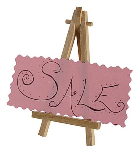 This drawing stand, miniature wooden easel that sets up instantly is the ideal fixture for boutiques, restaurants, weddings, libraries, as well as in homes. Each tiny stand offers a unique way to display items such as finished art, place cards, sale notices, price cards, photographs, small plates and more. This light miniature wooden easel, called a picture mount, is a great way to showcase children’s artwork or family portraits in a home. Customers can also use this small fashion stand to advertise sales in boutiques by placing an ornate price card on the stand and setting in front of merchandise and designer accessories! This boutique stand, miniature wooden easel is great for place cards at weddings or catered events. Libraries can use this book mount to neatly line bookshelves with children’s books or small periodicals. This miniature wooden easel provides the user endless presentation options!