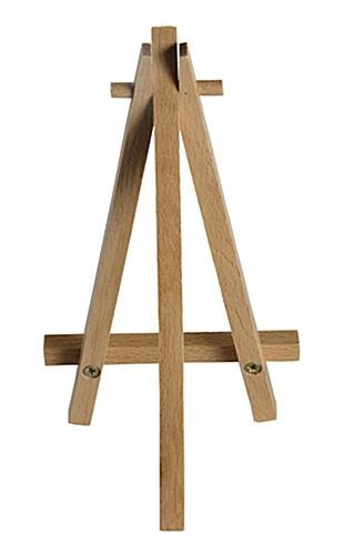 Many business owners take advantage of the low price of this art mount by purchasing the unit in bulk quantities for added savings. This solid beechwood miniature wooden easel that is a great promotional tool is ideal for exhibiting upcoming events or flyers. Often times, restaurants with limited space for presenting menu selections or cocktail choices, prefer a small table top display such as this rack as it is ideal for grabbing the attention of patron’s, but still leaves ample room for plates. A miniature wooden easel, like this drawing holder, is also great for studio artists to showcase finished art or painted plates at festivals or gallery exhibits. Each versatile unit can be placed just about anywhere! This miniature wooden easel that is affordably priced, transforms any promotional materials or photography into a professional masterpiece! Be sure to check out the large assortment of painting displays and accessories this website has available. Purchase this miniature wooden easel today!