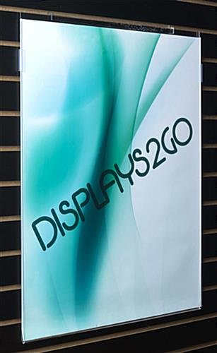 This Slatwall acrylic holder is easy to attach to most slatwall panels. It can be attached directly to any of our panels without any additional mounting hardware. This fixture holds any 22″ wide by 28″ high printed materials. It is great to display pictures, posters, prints and advertisements. It is a great way to make your advertisemnts and marketing graphics stand out. This slatwall acrylic holder allows for quick and easy literature changes. We also include plastic clips to attach to the sides for added stability. You can use this with many of our other products to make even more of an impact.