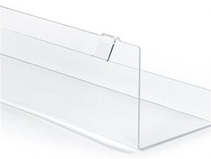 Allow this set of clear acrylic gridwall shelving to highlight your best merchandise within any space. Ideal for displaying artwork, books, jewelry, greeting cards, and more, these L-shaped shelves have a transparent design that offers patrons a full 360-degree view of showcased products. Be at ease knowing this acrylic gridwall shelving with 24.5″ x 6″ display space features a raised ledge that keeps items securely perched in areas of high traffic. Each set of clear j-rack shelves feature two hanging brackets that mount onto standard-sized wire panels without the use of any tools for convenient setup. Thanks to their lightweight design, these highly portable L-shaped trays are perfect for showcasing merchandise at traveling events such as craft fairs, pop-up shops, gallery exhibitions, and trade shows. Customers can easily update and create multiple merchandising configurations by using this gridwall shelving with other acrylic hanging accessories (sold separately). Take the stress out of building your personalized exhibit at your next event with this set of durable j-rack shelves!
