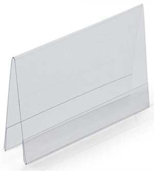 These economy place card holders, like countertop pricing displayers are offered at an extremely low price point, without having to buy in bulk! Each countertop a-frame is made from thin, flexible plastic. A-shaped, economy place card holders are affordably priced as a result of their economical design. These pricing label displays, economy place card holders are designed to hold two 5-1/2″ x 3-1/2″ graphics back to back. Users can utilize this A-style frame to showcase namecards, menu specials or to promote upcoming events. Economy place card holders that hold two prints back-to-back, such as the units seen here, enable users to present daily specials on one side of the display, while advertising upcoming events on the other side! The plastic displayer can be used to hold pricing labels, product information and advertisement cards as well.