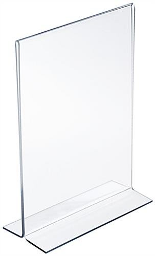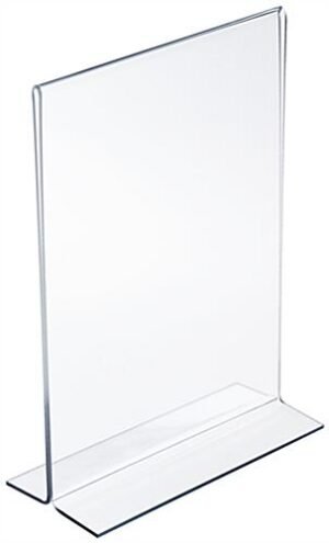 This menu card holder is 5″ wide x 7″ high and is a bottom loading sign frame. Restaurants and retail locations use this acrylic print holder to display food listings or advertisements. Each menu card holder, also known as a picture frame, is made with one solid piece of acrylic. The unique fold-over design is less likely to crack and break than similar units that are bonded together. Each sign display, menu card holder features open sides and bottom to allow for quick change-outs. Paper slips in easily through the bottom and sides. Use this menu card holder as a single or double sided display. Two sheets of standard paper can be placed back-to-back to advertise two of the same or different graphics.