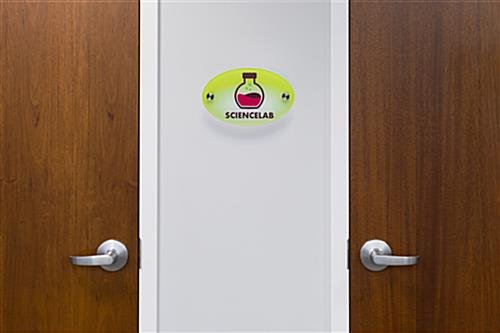 Ensure no one gets turned around in your business with help from this custom oval office sign with standoffs. Perfect for wayfinding, each personalized signage system is crafted from high quality acrylic that will last. The UV printed oval office sign with standoffs features a modern style that will complement existing décor. Create your own design with logos or text to be displayed outside offices, conference halls, hospital rooms, and more. Second surface printing on the acrylic ensures your graphics will maintain their high quality for years to come. Outfit the interior of your business with an office sign with standoffs to act as modern name plates or room labels.