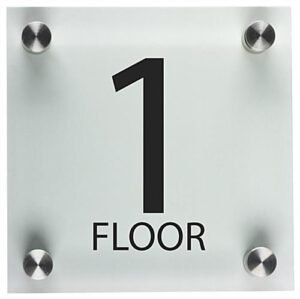 This level 1 sign is perfect for adding to the first floor of your business or school for people to see. The acrylic plates include the letters and numbers associated with your corridor to efficiently communicate to the public. People will admire the quality of this well-built sign when walking off the elevator or out of a stairwell. The trim of the first floor wall plate has a green tint to it for a sharp and professional look, while the steel standoffs allow the pre-printed plate to literally pop off the wall. The sign has lettering and numbers applied using UV printed ink for a seamless application. These units will communicate to the public what floor they’re on when moving about your business.