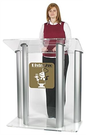 Workshop Series Acrylic and Aluminum Podium, 1-Color Custom Graphic – Clear & Silver