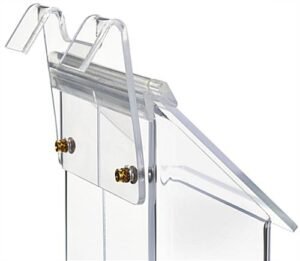 Our weatherproof gridwall brochure holder is an exterior advertising solution for any business. Each clear acrylic literature box enables unobstructed viewing of your inserts to make sure you never miss out on potential customers. Our single-pocket gridwall brochure holder is ideal for displaying 4″ x 9″ inserts such as standard brochures, menus, product pricing, or any advertisement that informs consumers of your brand. This product includes two angled mounting tabs that slip easily on wire panels to attach or move when needed. The hinged top cover and durable acrylic construction of this literature box keep printed materials protected from outside elements. Highlight your displayed contents without sacrificing appearance with our clear gridwall brochure holder today!