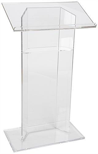 Each 47″ tall reading pulpit is made from durable plexiglass and features a slanted top with deep 1″ bookstop to hold presentation materials and notes.