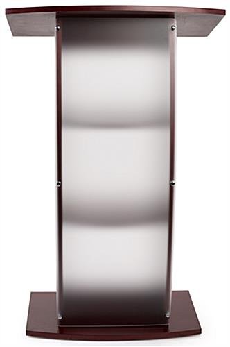 Constructed of shatterproof acrylic, this frosted replacement panel for FLCT series lecterns is a great addition to existing podiums. Fingerprints and smudges are minimized by the opaque finish. This replacement panel can be installed by simply unscrewing the existing front piece to remove and replacing with the new acrylic. The podium itself is sold separately.