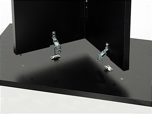This elegant black floor lectern has a modern modular design. This lightweight folding desk, portable lectern, weighs only 31 lbs. This portable lectern is very easy to setup, just line up dowels with corresponding holes and secure the clasps. This portable lectern has a paper lip to hold handouts, a book or other reading materials in place. This portable lectern, also known as a lightweight wood lectern. can be used as a presentation stand or a lecture podium.