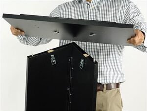 This folding desk is the perfect portable lectern for any meeting, classroom or tradeshow. A portable lectern, such as a floor podium or folding lectern, is built with ultra portability in mind. This portable lectern can be carried or shipped wherever it is needed, with minimal effort. This portable lectern ensures easy availability wherever and whenever a presentation is scheduled. This portable lectern can be easily unassembled to fit effortlessly in a 30″l x 20″w x 8″d carry bag.