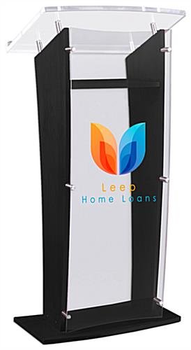Add this UV printed clear replacement panel for CVWD Series Lecterns to your existing podium for an updated look. The 16.5” x 44” panel is constructed from durable 0.25” acrylic and prints with full-color custom graphics. These replacement panels are great for rebranding and updating logos. A constantly fresh design can be achieved by purchasing multiple graphics and rotating them out.