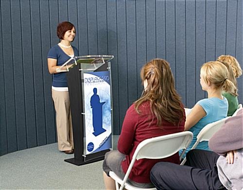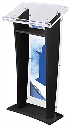 Workshop Series Wood Podium with Acrylic Panel, Full Color UV Custom Graphics – Black