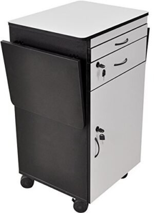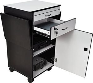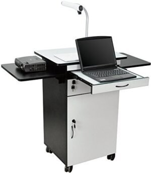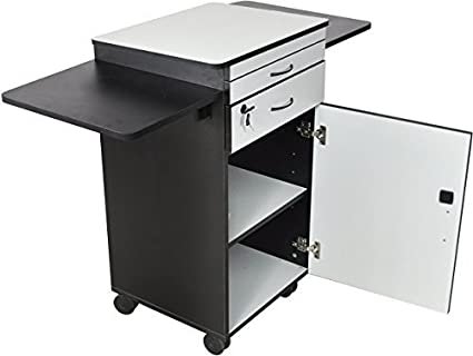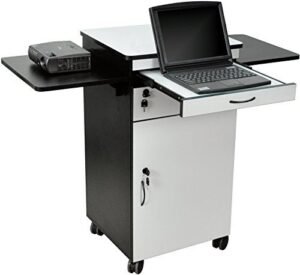 - Wood Multimedia Workstation Cart, 38 inches High; Durable Black/Gray Laminate Finish