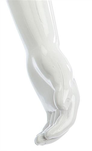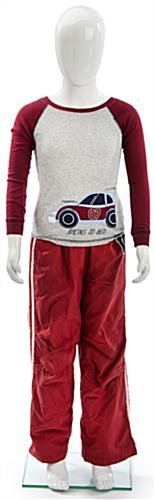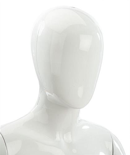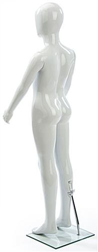 This glossy child mannequin is the ideal store fixture for displaying youth clothing in department stores and many other retail locations. The white abstract body form showcases fashion accessories and apparel for both male & female kids (boys ages 6-11 and girls ages 7-12). Each unisex child mannequin includes a weighted glass base with calf rod ensuring stability when in use. The body of each abstract clothing form features removable arms for easily interchanging youth clothes and accessories. Each child mannequin is made from eco-friendly polypropylene which makes the unit extremely lightweight at only 10lbs and allows the display to be transported easily from location to location. Buy the versatile store fixture shown here and show off your company’s adolescent male & female clothing collection!